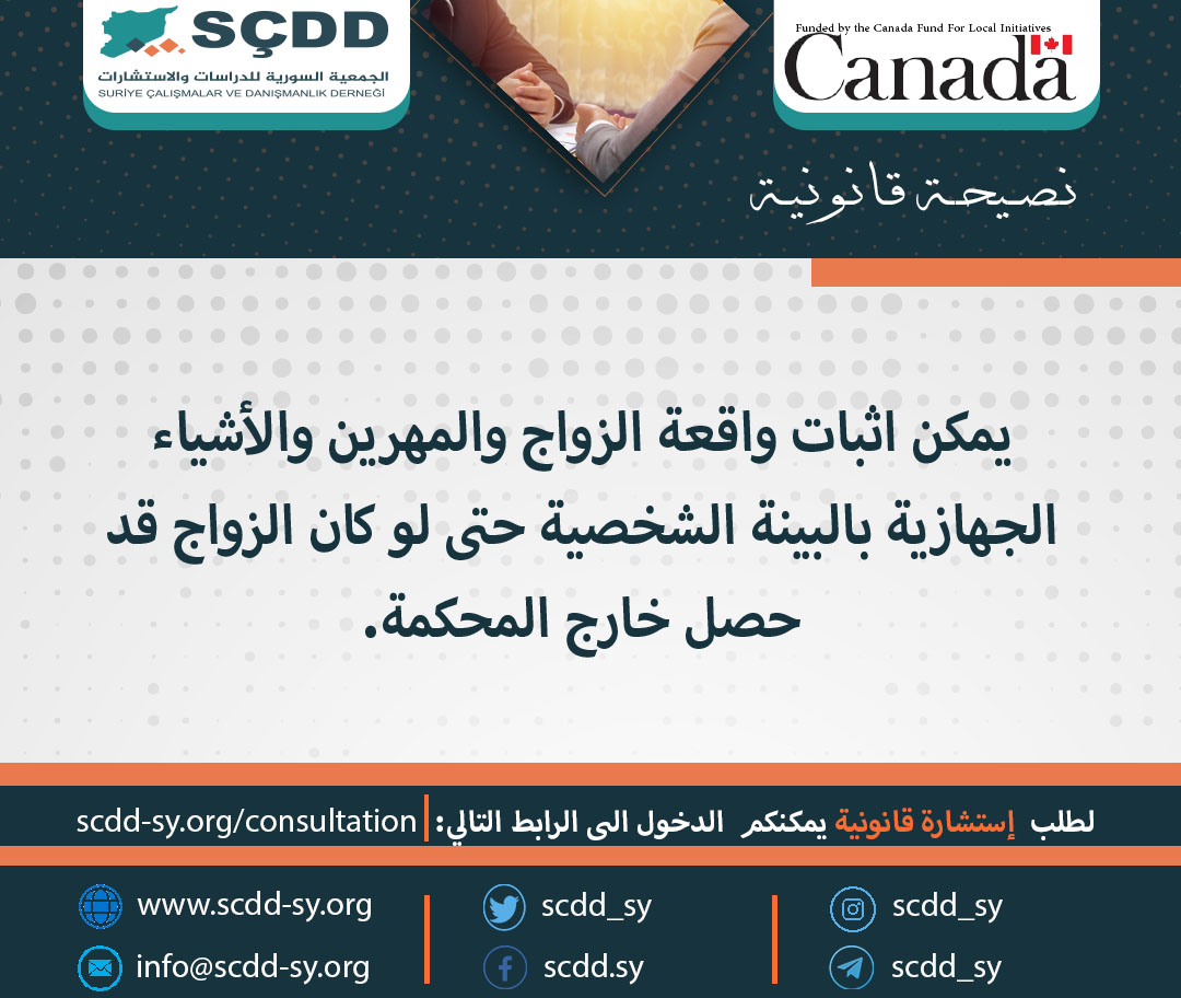 يمكن اثبات واقعة الزواج والمهرين والأشياء الجهازية بالبينة الشخصية حتى لو كان الزواج قد حصل خارج المحكمة.