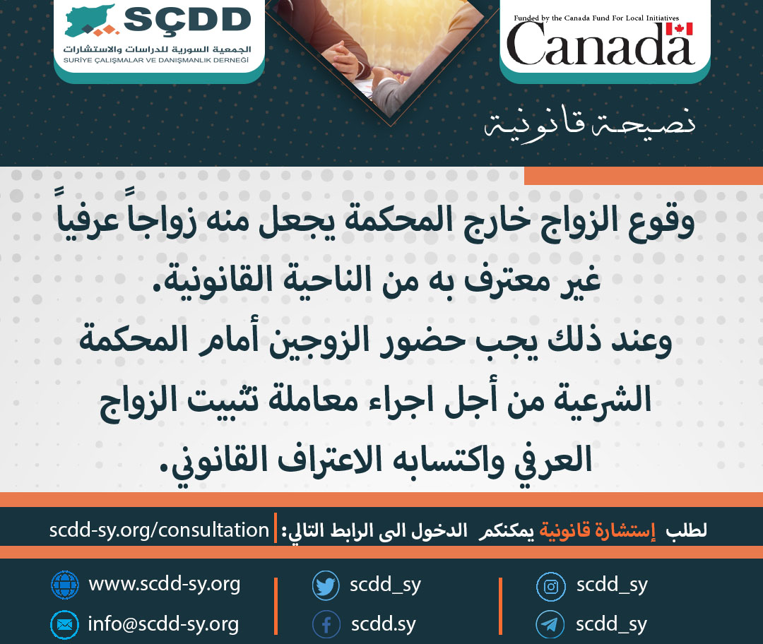 وقوع الزواج خارج المحكمة يجعل منه زواجاً عرفياً غير معترف به من الناحية القانونية. وعند ذلك يجب حضور الزوجين أمام المحكمة الشرعية من أجل اجراء معاملة تثبيت الزواج العرفي واكتسابه الاعتراف القانوني.