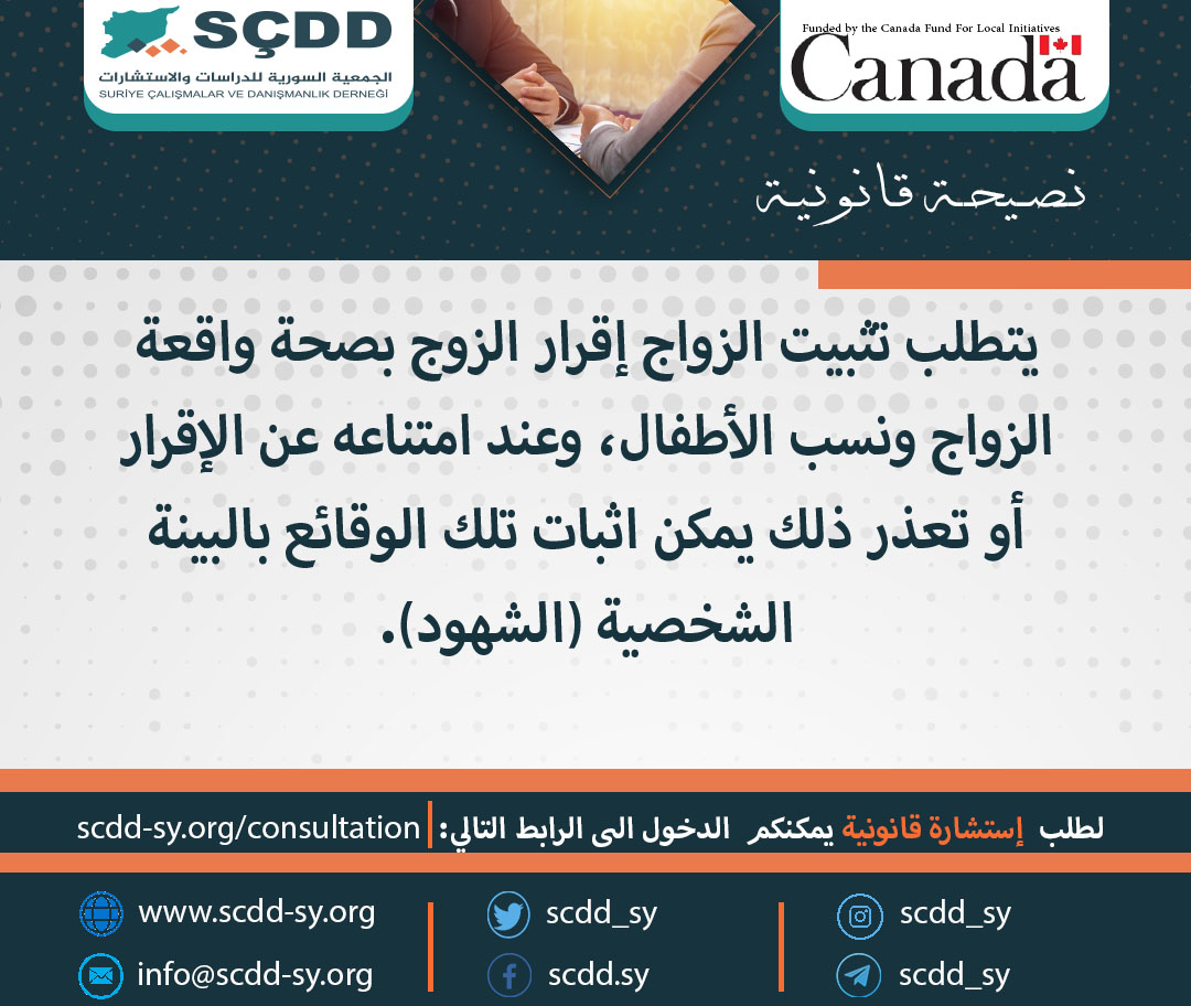 يتطلب تثبيت الزواج إقرار الزوج بصحة واقعة الزواج ونسب الأطفال، وعند امتناعه عن الإقرار أو تعذر ذلك يمكن اثبات تلك الوقائع بالبينة الشخصية (الشهود).