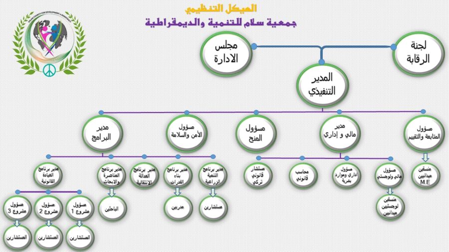 1- مدير البرامج: الذي يشرف على خمسة برامج: العيادة القانونية ، بناء القدرات ، المناصرة والبحوث ، العدالة الانتقالية ، التنمية الزراعية.