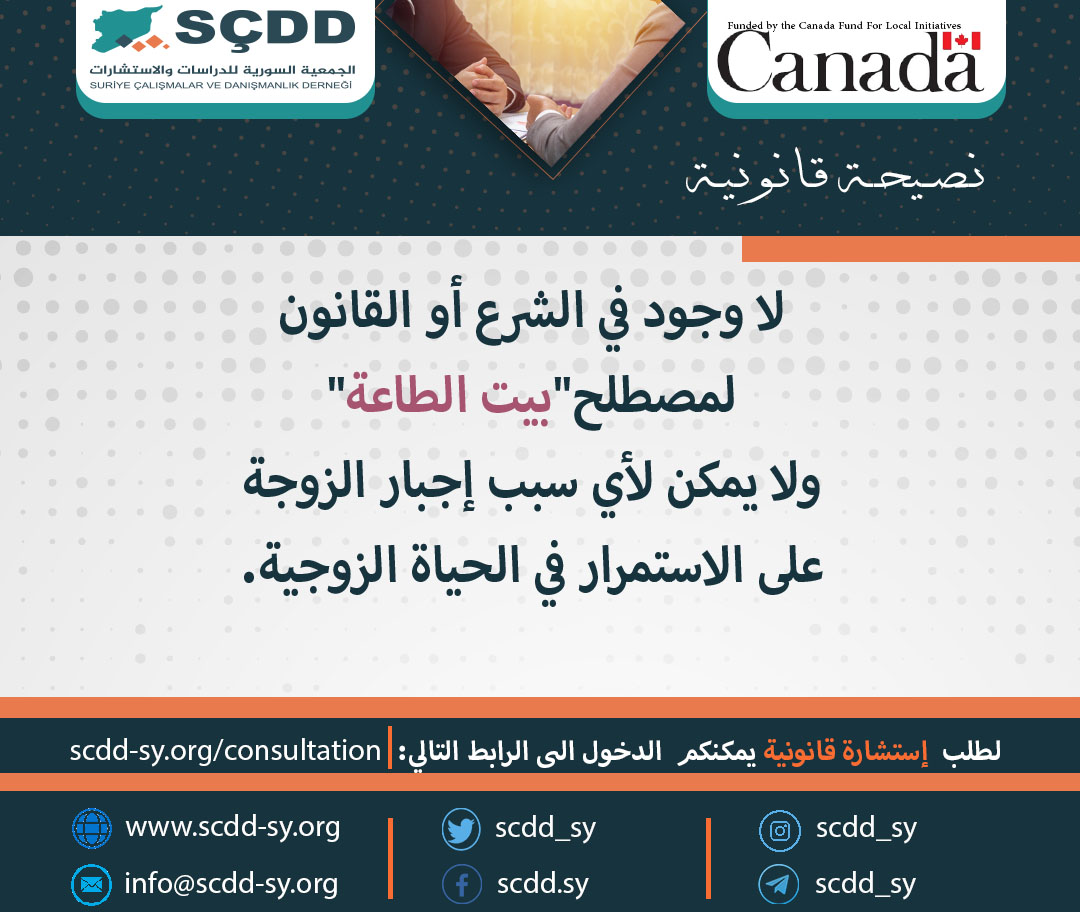 لا وجود في الشرع أو القانون لمصطلح” بيت الطاعة” ولا يمكن لأي سبب إجبار الزوجة على الاستمرار في الحياة الزوجية.